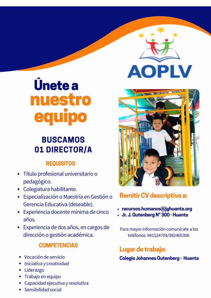 Para el envío de hojas de vidas y consultas sobre convocatorias, llámanos al 994 868 686 o escribe a recursos.humanos@jghuanta.org